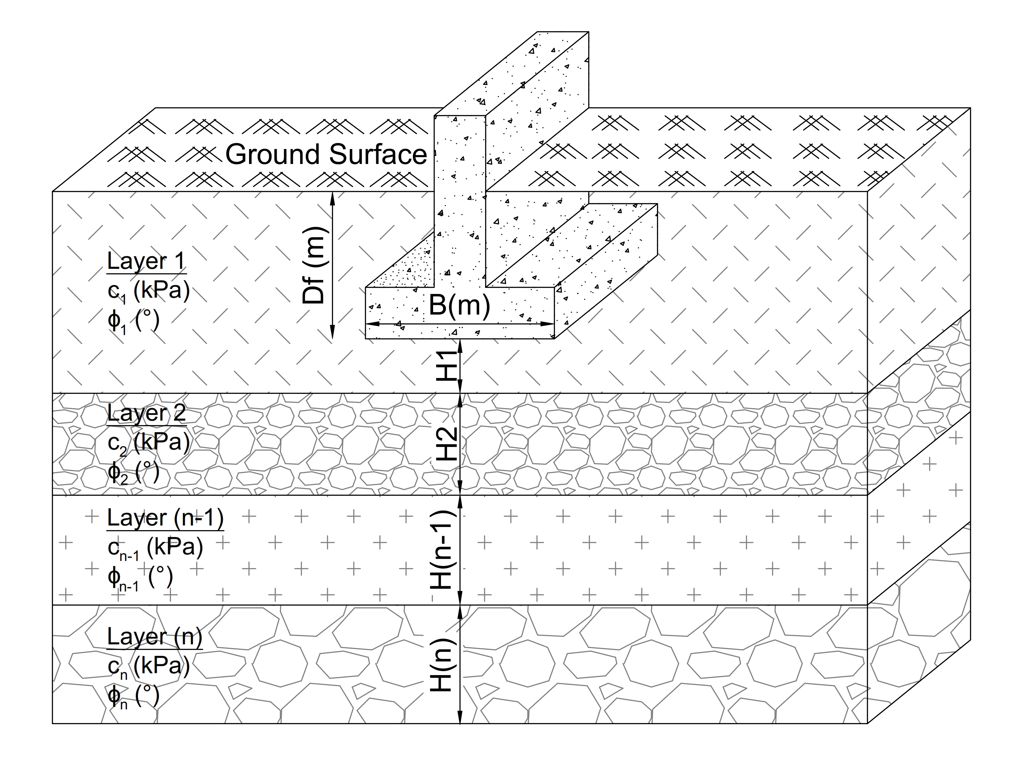 φ: Friction angle of the soil layer under the foundation
