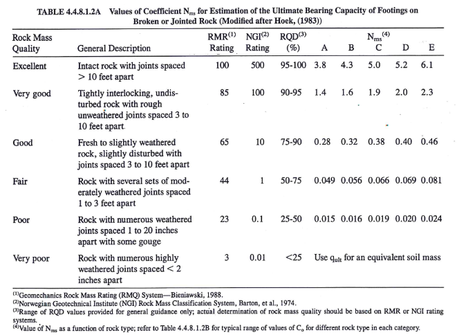 αE = 0.0231(RQD) - 1.32 ≤0.15